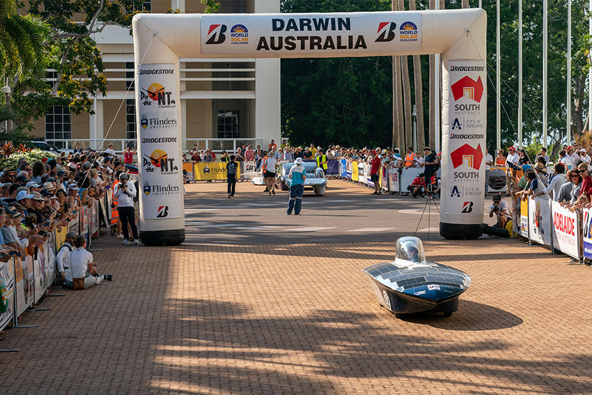 BWSCは、オーストラリア北部の都市ダーウィンをスタートし、南部のアデレードまでの約3,000kmを縦断する、過酷なレースで、主に世界の大学・若手技術者が参戦しています。