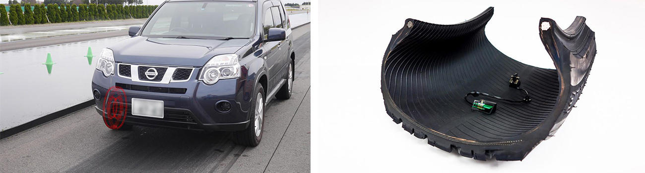 私ブリヂストンではタイヤにセンサーを取り付けて路面やタイヤの状態を感知する技術CAISの開発を進めています。