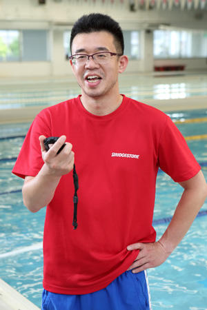 今回は、そんなブリヂストングループにおいて、スイミングスクール、テニススクールなどを運営するブリヂストンスポーツアリーナ(株)で、福岡県のスイミングスクールを引っ張るお二人が登場。元気満点な課長と内なる野望を秘めた統括コーチの熱い絆は、今日もスクールを活気づけます。