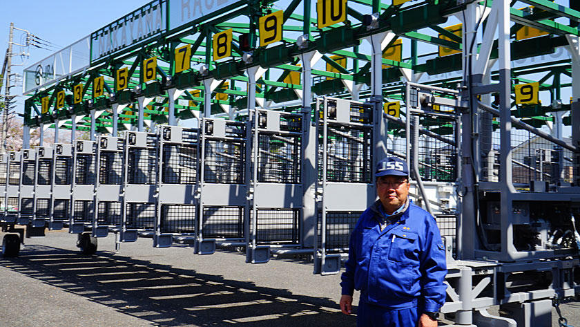 (園部さんは発馬機に携わって35年の大ベテラン!)今回は色々と教えて頂いた中で、特に印象に残ったことを皆様へご紹介したいと思います。