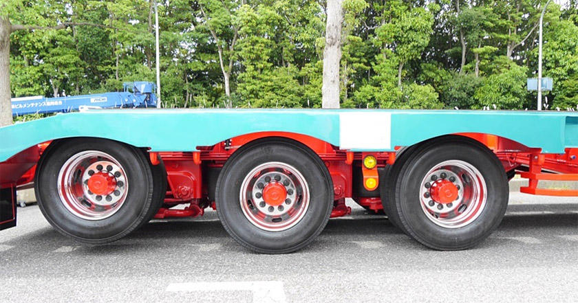 荷物を積んでいない状態ではタイヤへの負荷が小さくなるため、トレーラの中にはタイヤを一部浮かせて走行ができるようになっている種類もあります。タイヤの摩耗対策や車両燃費改善、高速道路の料金なども安くなるそうです!すごいですね!