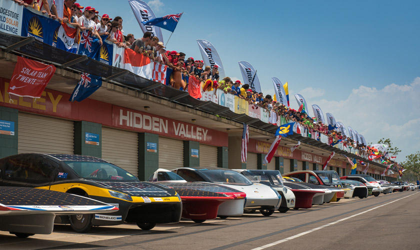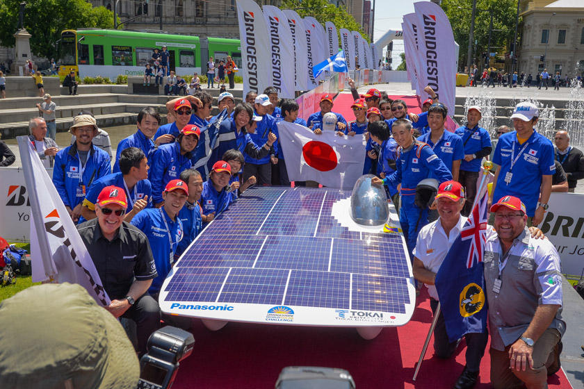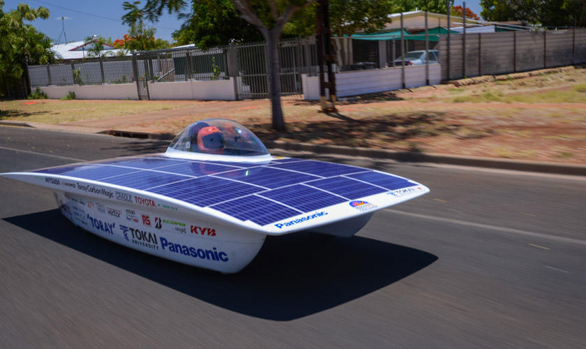 使用するレースカーのエネルギー源は太陽光のみ。ソーラーパネルと、それによりバッテリーに充電した電力を使ってモーターを駆動させ、ゴールを目指します。世界中の主に大学や高校がチームを組んで出走し、各チームに協力する企業も含め、参加者にとってはシビアな環境にも耐える最先端の技術を磨く場ともなっています。
