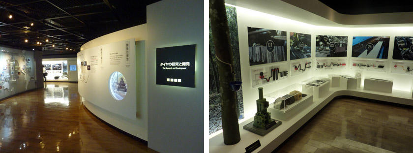 1階では、ブリヂストンの歴史、色々なタイヤの種類や構造、モータースポーツ活動などを展示しています。