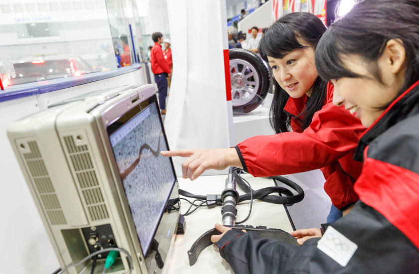 また、ブリヂストンの独自技術である「発泡ゴム」を顕微鏡で拡大し、お客様に見て貰うコーナーも大好評でした。