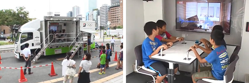 また、この日はブリヂストンの免震体験車も公会堂へ駆けつけており、耐震建物では激しくガタガタ揺れて怖かった地震が、免震建物になるとゆっくり平行に揺れる安心な揺れになっていることを体感することができました。