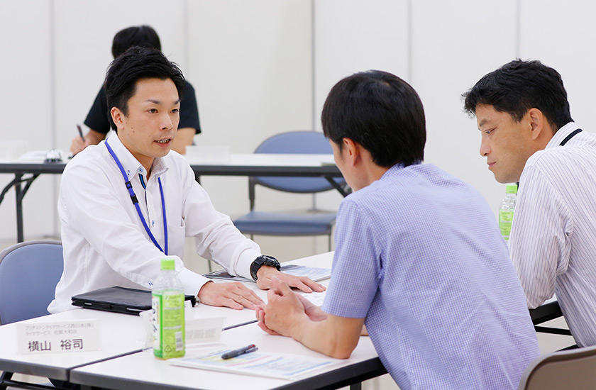 お客様役からは、提案内容に対してのコスト削減額や環境面などの具体的な貢献度を質問する場面も多く、