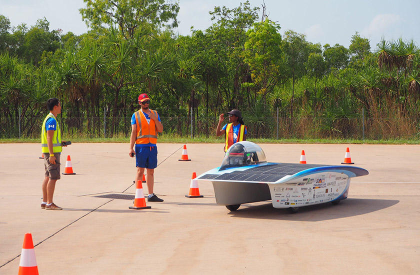 ダーウィン郊外のヒドゥンバレーにあるサーキットで10月7日に行われるタイムアタック(動的車検)の走行練習や、本戦の路上での動きやコントロールストップでの作業確認を行うチームもありました。