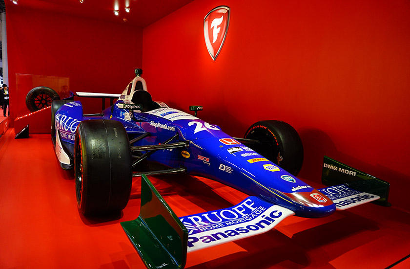 世界3大レースのひとつに数えられるインディ500(インディアナポリス 500マイルレースの略称)。5月に行われたレースでは、佐藤琢磨選手が日本人初優勝を果たしました。 ブリヂストンのブースでは、その時に使われた車両のモックアップを展示しています。