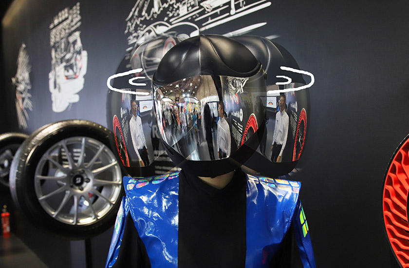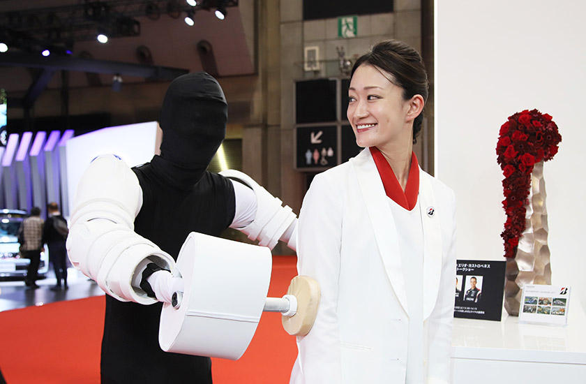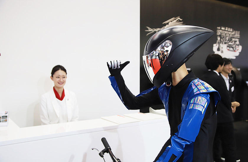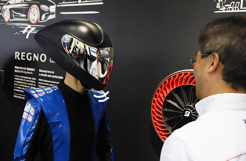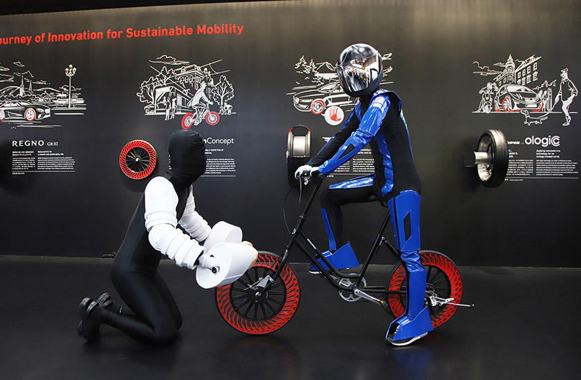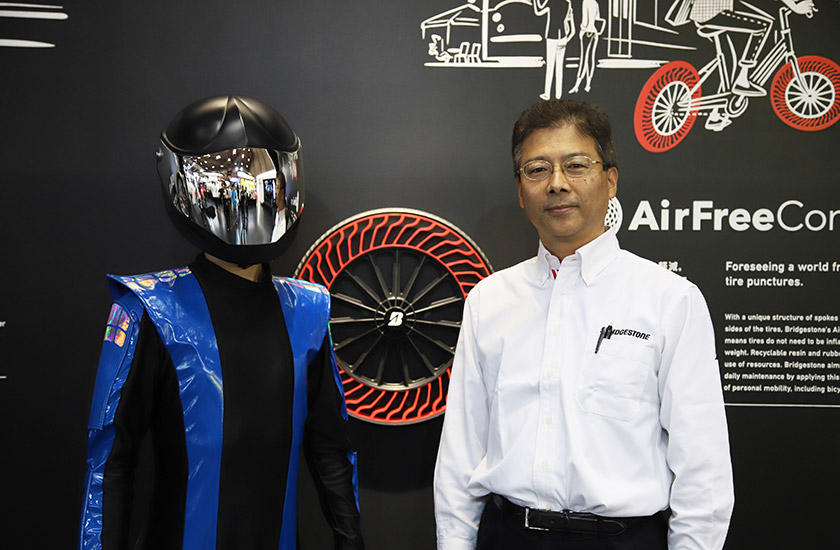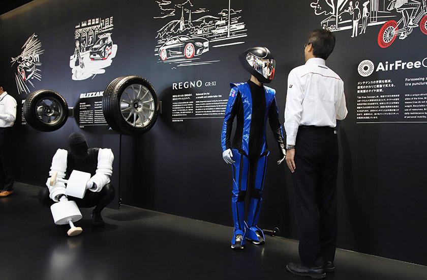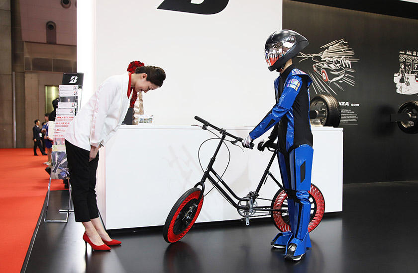 今週から開催された東京モーターショーで、当社は話題のパンクしないタイヤの自転車、エアフリーコンセプトを採用したタイヤを搭載した自転車を展示しています。多くのお客様に興味を持っていただいており、大盛況ですが、少し変わったお客様もお越し頂きました。