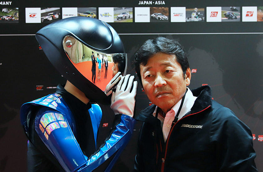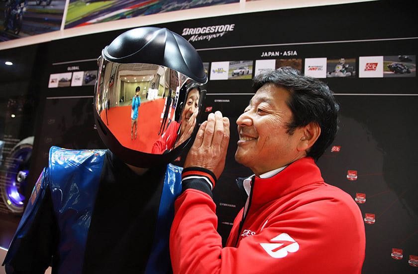 ブリヂストンの2輪モータースポーツのマネージャー、山田宏に会いに来たようです。