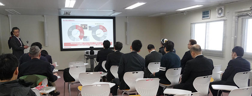 冒頭、テストコースの責任者からHPGの施設概要と評価体制をご説明。次にVRX2の開発責任者から開発の背景と商品コンセプトをご説明しました。