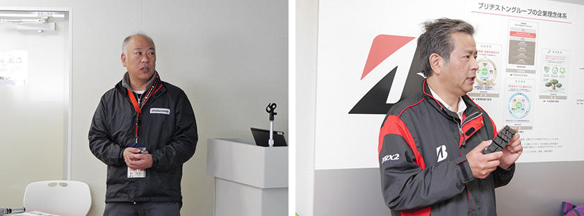 (左:技術スポークスパーソン 原)多くの参加者から「タイヤの違いによる氷雪性能の差を直接体感できた」とコメントを頂くことができました。
