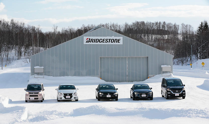ブリヂストンのスタッドレスタイヤはこのテストコースでその性能を厳しく評価され、合格したタイヤのみが市場に送り出されています。