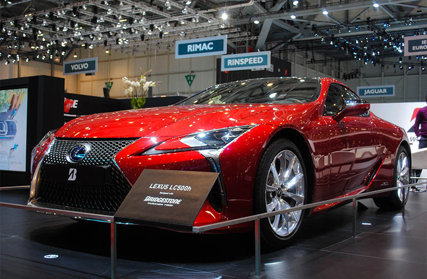 ヨーロッパで販売しているタイヤ「TURANZA T005」を装着した「LEXUS LC500」。操縦安定性とウェット路面での制動性能に優れたタイヤです。