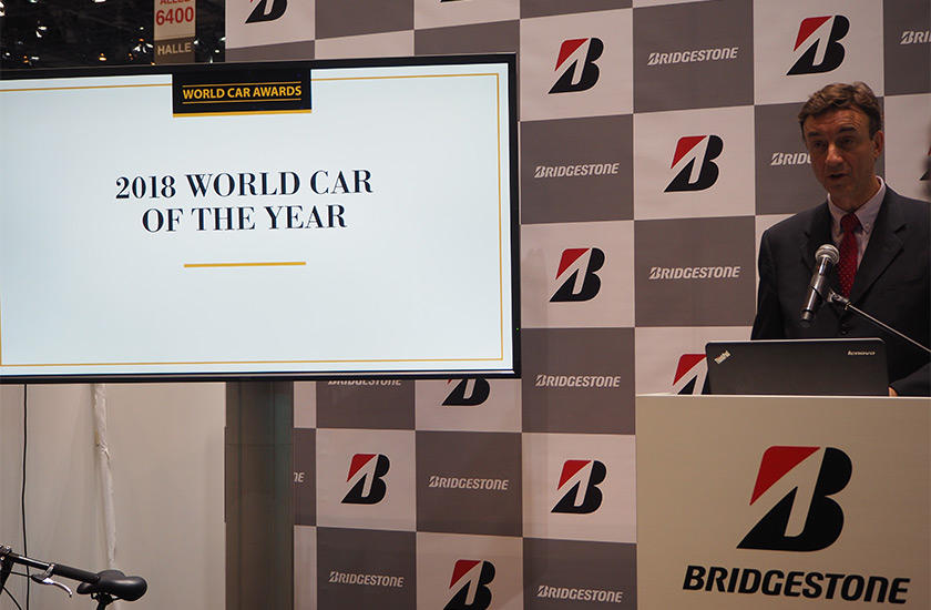 また、3月8日には、ブリヂストンブースで、ワールド・カー・オブ・ザ・イヤー2018の最終選考3台が発表されました。ワールド・カー・オブ・ザ・イヤーの最終選考はこちらの三台!