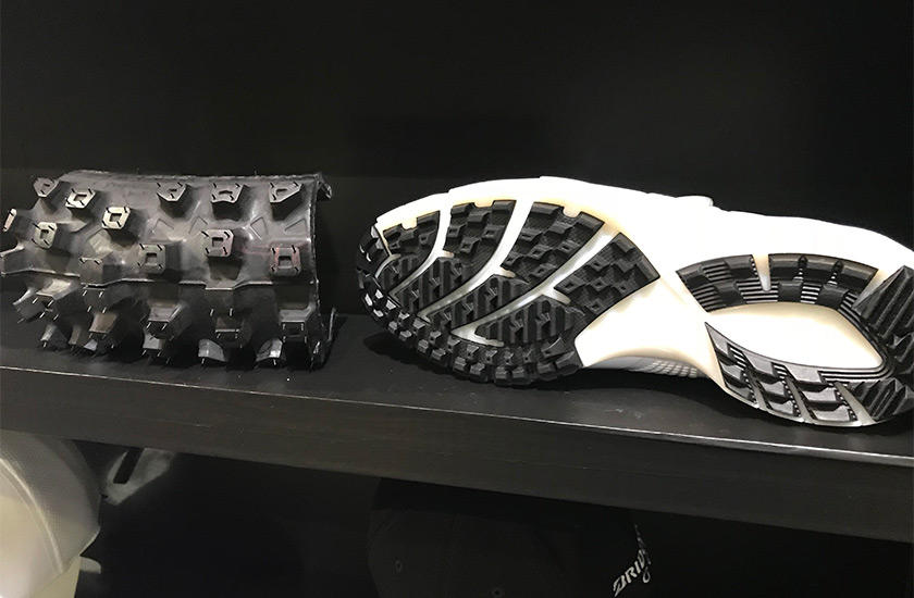 」。バイクのモトクロス用タイヤの知見を応用したソールデザインが特徴です。