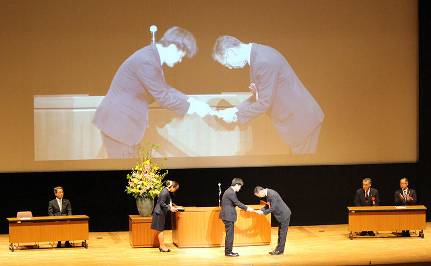 演奏終了後には、彦根工場操業50周年記念として、ブリヂストン吹奏楽団から抽選によるCDプレゼントというサプライズがあり、皆様笑顔で演奏会が終了しました。 今回の公演の入場料は、株式会社ブリヂストンが交通関連産業の一員であることを念頭に、交通災害で交通遺児となられた方々を支援するため、公益財団法人おりづる会※様を通じ交通遺児の方々に全額寄付します。 記念セレモニーでは、おりづる会参事の日高様に目録の贈呈を行いました。