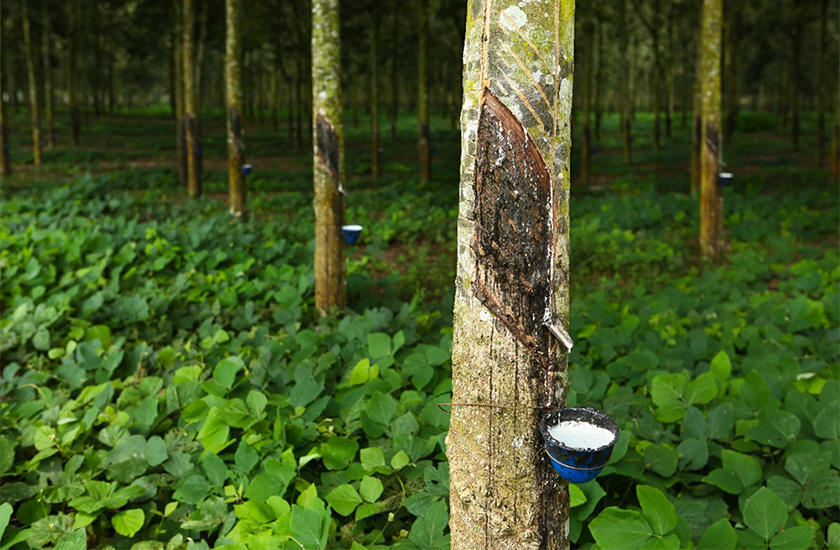 自動車などに使われているタイヤの半分(※)は、ゴムから出来ています。その中でも重要なのが天然ゴム。強度、耐久性など、合成ゴムに比べて優れた特徴を持っている天然ゴムは、タイヤを製造する上で欠かせない、非常に重要な素材です。