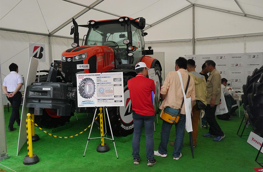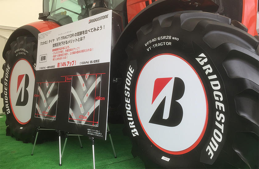接地面積が広がることで、土への影響だけでなく、けん引力や乗り心地も良くなることをご来場者の方々にご説明しました。