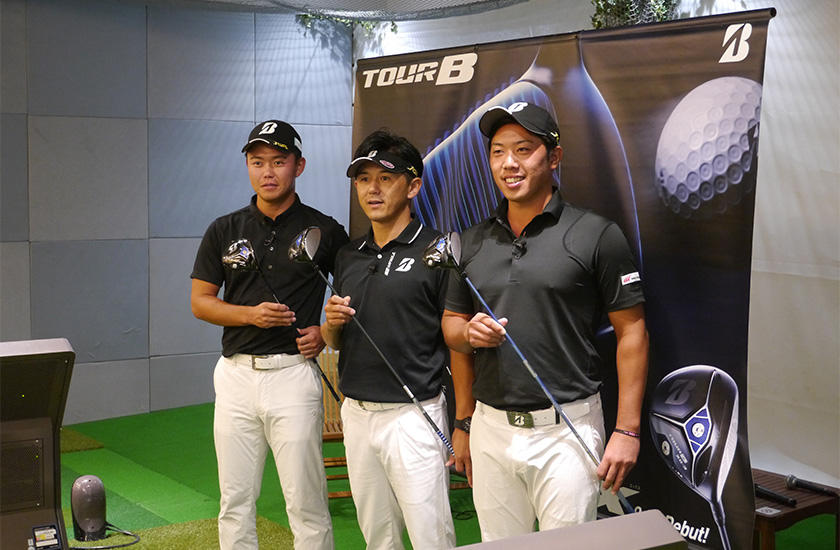 発表会ではブリヂストンの契約プロである、堀川未来夢プロ(右)、近藤智弘プロ(中央)、木下稜介プロ(左)から実際に新商品を使用した感触をお聞きすることができました。