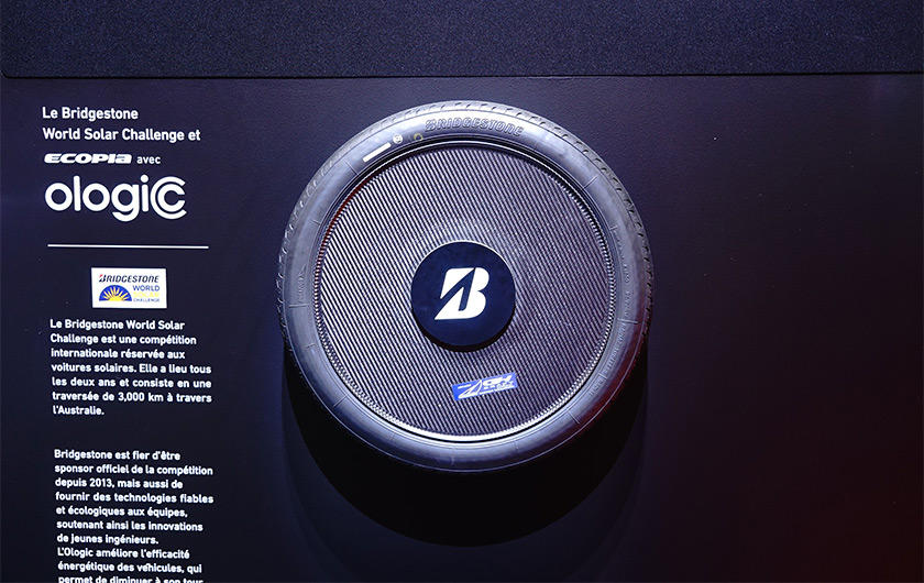 その他にも、昨年、世界最高峰のソーラーカーレース、「ブリヂストンワールドソーラーチャレンジ」で活躍したソーラーカーとブリヂストンが開発したソーラーカー用タイヤ「Ecopia with ologic(エコピアウィズオロジック)」などをご紹介しています。