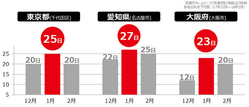 意外かもしれませんが、普段降雪の少ない都市圏でも、1月は最低気温が3℃を下回る日が8割以上の頻度で発生しています。冬道はブラックアイスバーンと呼ばれる気づきにくい路面凍結が存在していて、夏タイヤのままでは予期せぬスリップなどのリスクがあります。