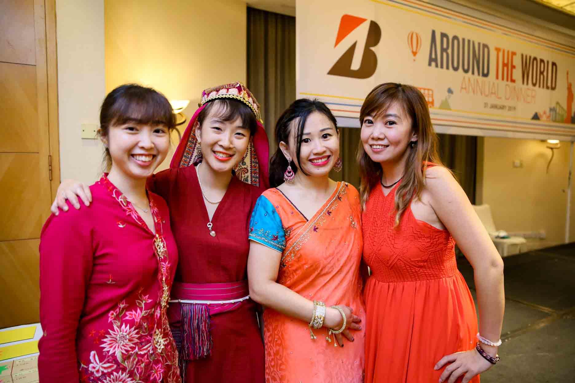 さて、ここまで中国文化に基づく旧正月についてご紹介しましたが、実はシンガポールはそれだけでは語れません。シンガポール国民のおよそ7割が中華系、というのは上述しましたが、マレー系、インド系など様々な民族で成り立っています。 BSCAPの従業員も同様です。例えばこのCNY Dinnerでは、「色々な文化を代表する衣装で参加する」というテーマが設定されていました。世界中のどんな衣装でもOKでしたが、多くのメンバーが自らのルーツに基づく民族衣装を纏い参加しました。