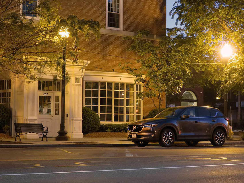 SNSに投稿するならスマートフォンのカメラならではの縦フレームやスクエア(正方形)フレームも活用してみましょう。しかし全長が4m以上あるクルマは斜め前や真横から見るとけっこう長く、これを風景とバランスよく縦フレームやスクエアフレームにいれるのはなかなか難しいもの。そこでこれらのアングルをうまく活用するためにクルマを真正面から撮ってみましょう。こちらも道路や景色などをうまく取り込めれば雰囲気のある写真が簡単に撮れるはず。ヘッドライトやポジションランプなども効果的に使うとプロのような写真になりますよ。