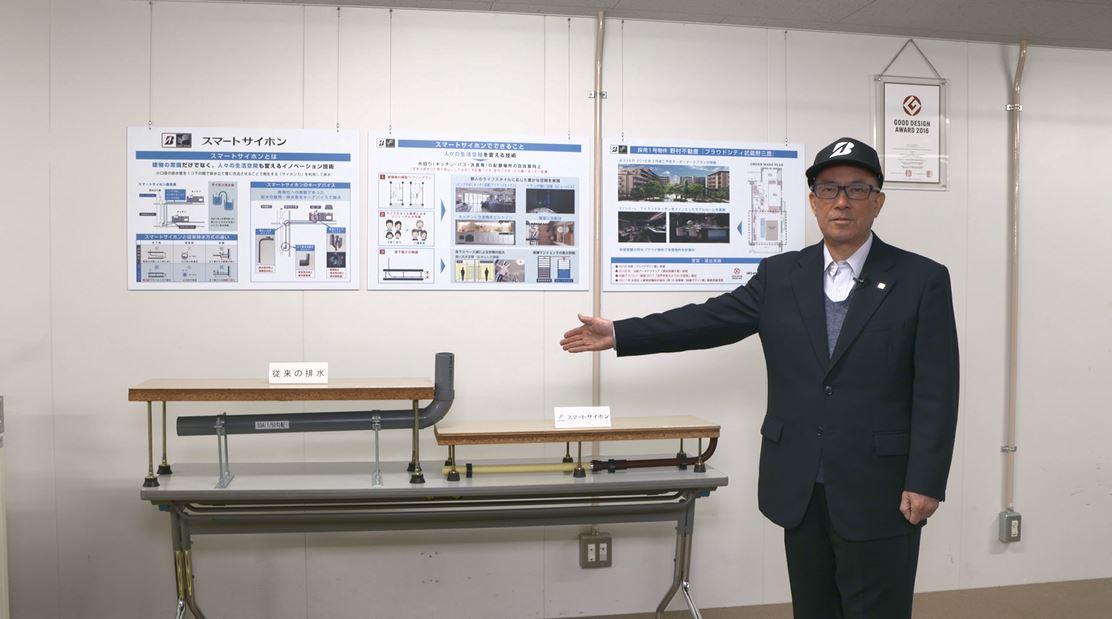 こんにちは。ブリヂストン技術スポークスパーソンの原です。今回はサイホンの原理を取り入れた新しい排水システム「スマートサイホン」についてご紹介します。「スマートサイホン」を利用することで、マンションなどの建物のキッチンや浴室などの水廻り設備を今まで以上に自由に配置することが可能となります。