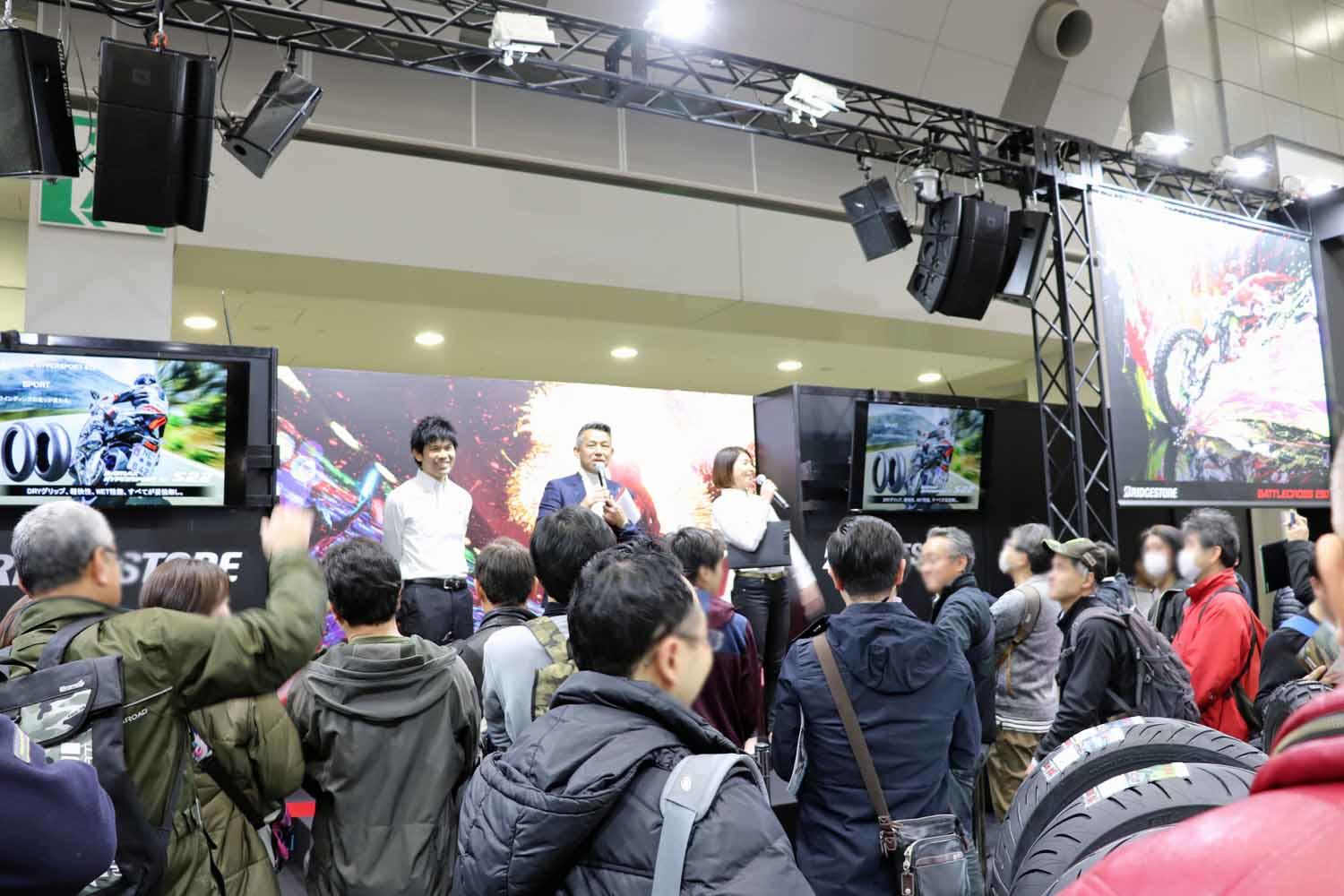 特設ステージでは、新商品の紹介やタイヤ選びのコツ、全日本ロードレース参戦ライダーとのトークショーを実施し、多くのお客様に観覧頂きました。
