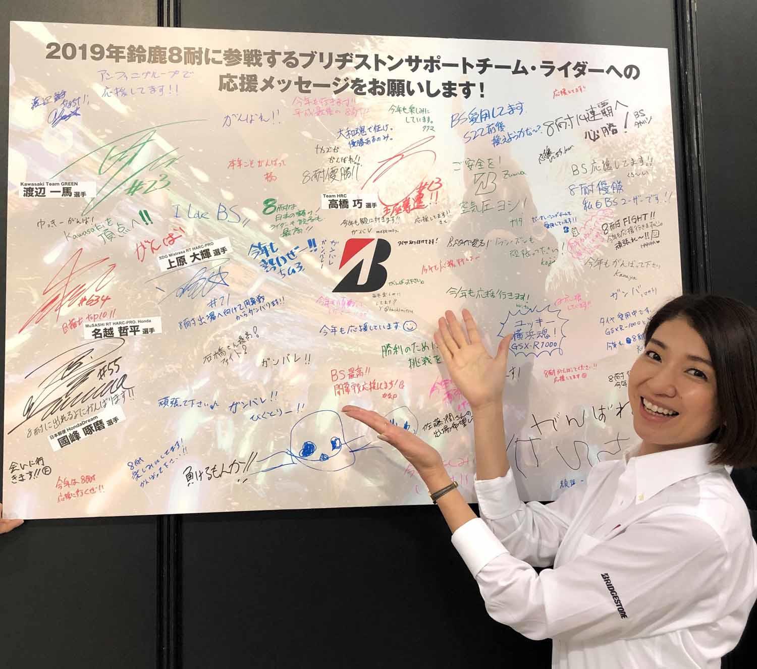 ブースでは今年の鈴鹿8時間耐久ロードレースに参戦するブリヂストンサポートチーム・ライダーへの応援メッセージも募集し、最終日にはボードがコメントで一杯になりました。
