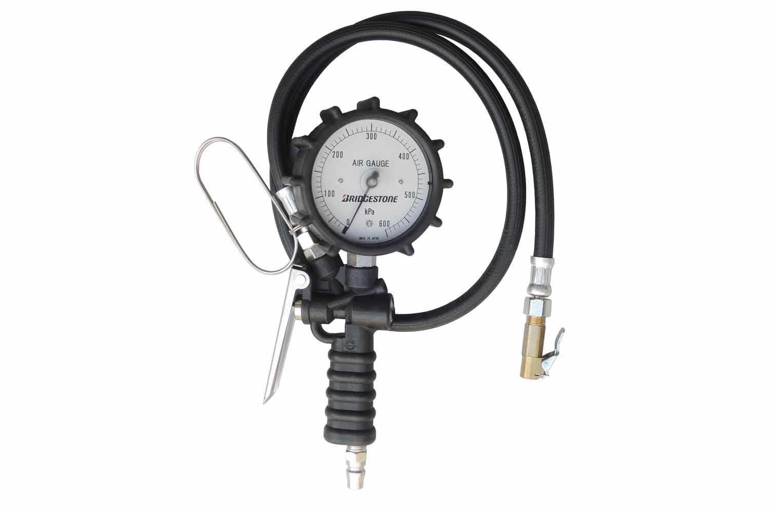 ブリヂストンエアゲージ実は、ブリヂストンのタイヤゲージもあるんです。上の写真は「ブリヂストンエアゲージ」と言われる計測器で、多くの販売店で使用頂いています。夜には表示板が光って見やすいようになっています。
