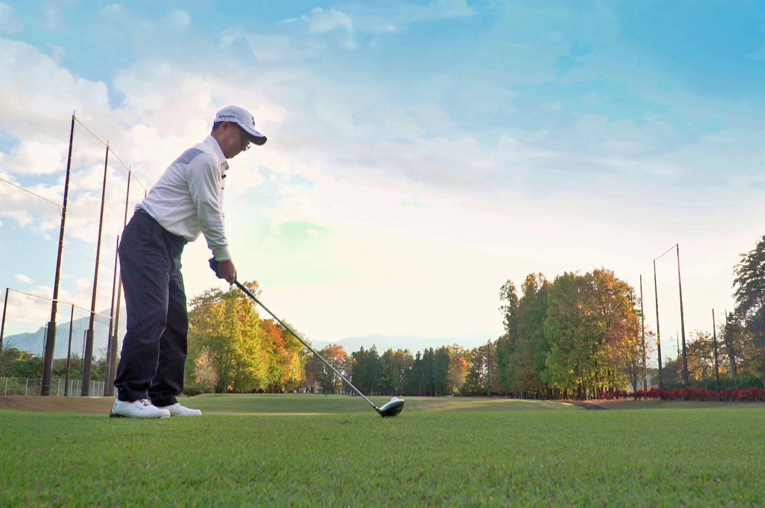 ディンプルの有無でゴルフボールの性能がどう変わるのか?まず「ディンブルあり」のボールとしてタイガー・ウッズ選手も使っている「TOUR B XS」、次に「ディンプルなし」、「ディンプル半分」の3つのボールを打ってみます。