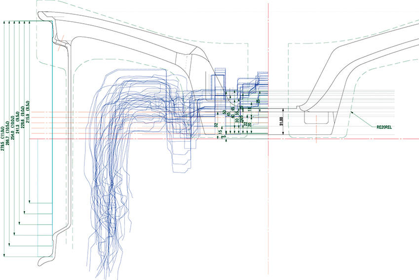 フェンダー・キャリパー・ハブとのクリアランスも空きすぎないようなベストな距離感をもち、クルマへの最高のフィッティングを実現するとともに、 受注生産であることから、数多くのバリエーションを取り揃えることができる。