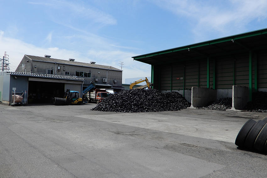 このリサイクルセンターでは、ひと月に乗用車用タイヤ約1,000トン、トラック・バス用などのタイヤ約300トンがリサイクル用に処理されています。