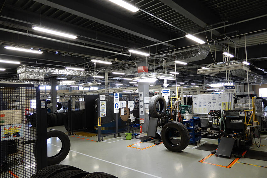 ブリヂストンは2008年にタイヤのリトレッド(表面の擦り減ったゴムを貼り替える)事業強化のためにアメリカのバンダグ社を買収し、 日本国内でもトラック・バス用タイヤのリトレッドによるリユースを普及させるためにバンダグファクトリーを全国で立ち上げました。 現在ブリヂストンのリトレッド工場は日本全国に13あり、この「バンダグ・リトレッド大阪ファクトリー」もその1つです。 ここでは、大阪地区を中心に1度使用されたトラック・バス用タイヤをリトレッドタイヤにするリユース事業を行っています。