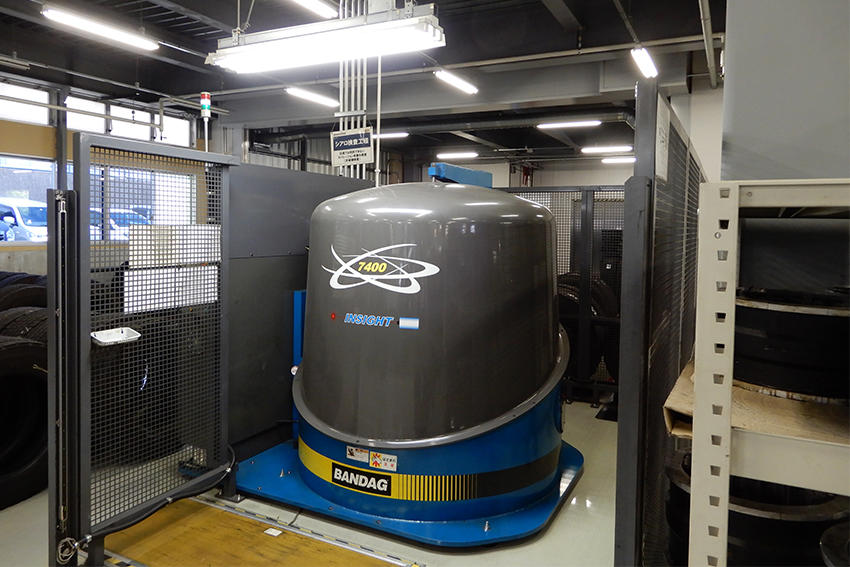 1度使用されたタイヤは、目視点検が終わったあと、2種類の機械を使った点検を行います。 路面と接地するトレッド部に目視ではわからない傷がないか判別する「NDT検査(外部損傷検査)」と、タイヤ内部に損傷がないか判別する「シアロ検査(内部損傷検査)」です。 二つの検査をクリアしたタイヤだけがリトレッドタイヤに生まれ変わることができます。