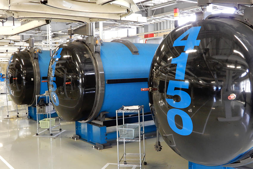お客様の下にお届けする前に、最後の検査「耐圧検査」を行います。
