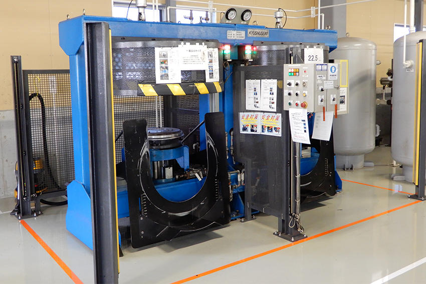 特に、ここには22本の様々なサイズのタイヤを同時に入れることができる加硫缶が3機あり、1日に最大154本のリトレッドタイヤを生産することができるので、多くのお客様にタイムリーにタイヤを提供することが可能です。