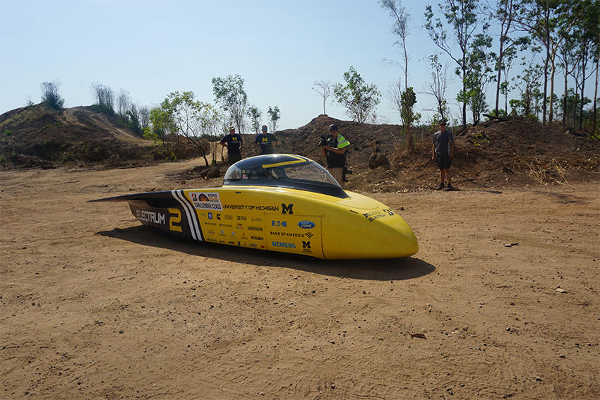 BWSCは、オーストラリア北部の都市ダーウィンをスタートし、南部のアデレードまでの約3,000kmを縦断する、過酷なレースで、主に世界の大学・若手技術者が参戦しています。