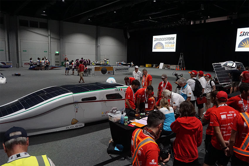 各チームは、9月頃からオーストラリアで、指令車とのコミュニケーションなどレースに向けた走行テストをしています。そして、スタート前は、スタート地点のダーウィンにあるコンベンションセンターで、車両の整備や車検などを行っています。