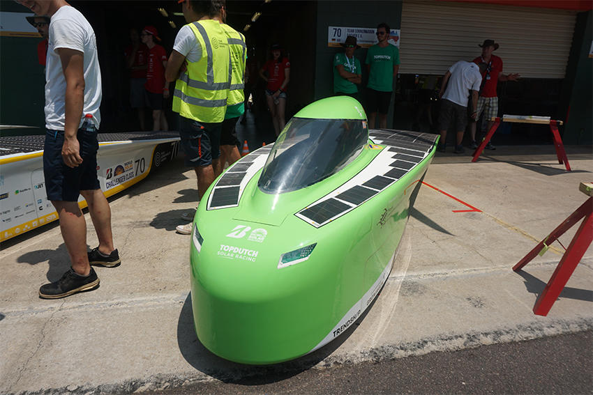 タイムトライアルは、ダーウィン郊外にあるヒドゥンバレーモーターコンプレックスのサーキットにて行われ、ラップタイムの早い順で翌日の出走順が確定します。今年のトップスタートは「Top Dutch Solar Racing」チームになりました。