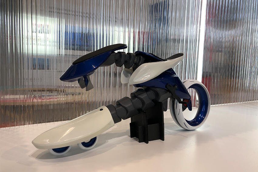 スピードや車体の傾き、温度などの変化に合わせてバイクが変形するというアイデアが込められています。