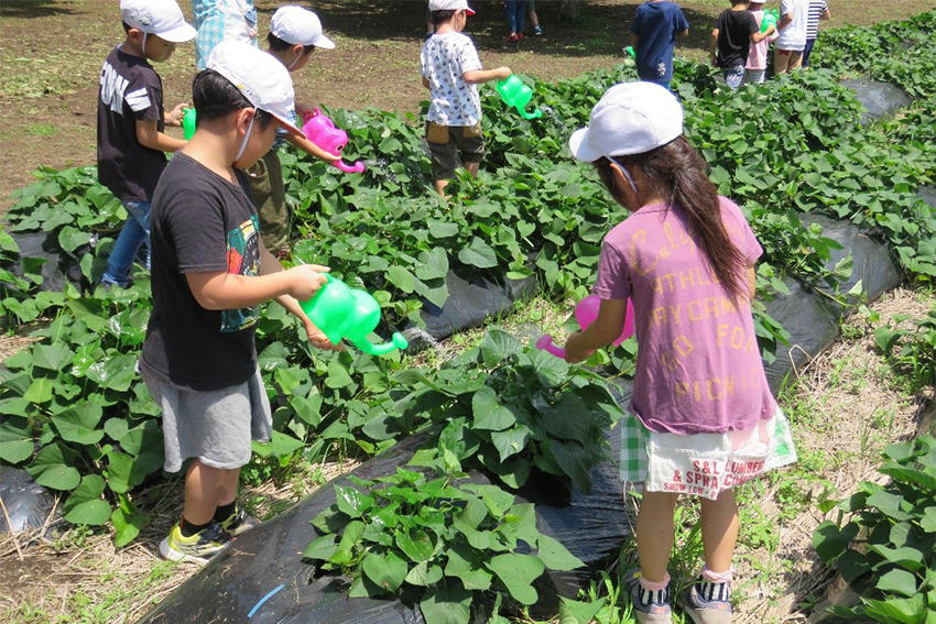 苗を植えた後も、園児の皆さんによるサツマイモのお世話は続きます。