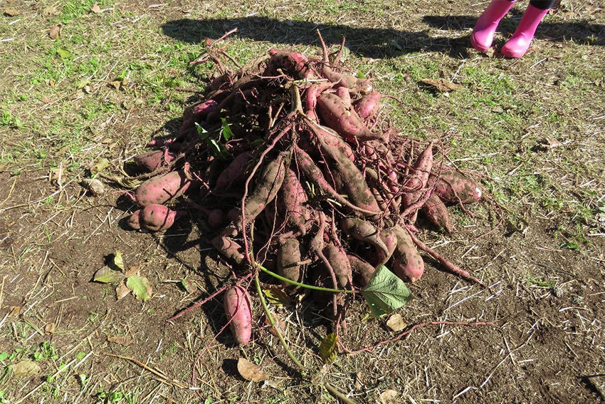皆さんの懸命なお世話のおかげで、大きく育ったサツマイモが採れたようです。