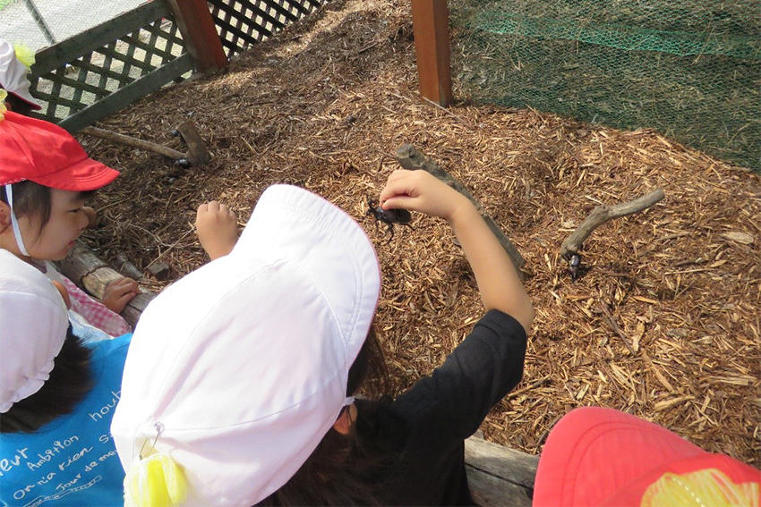 近隣の保育園の皆さんと一緒にサツマイモやカブトムシの成長過程を学んだり、実際に育てたりしています。
