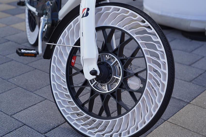 パンクの心配がなく、空気充填の煩わしさもない未来型の自転車のプロトタイプに試乗いただきました。