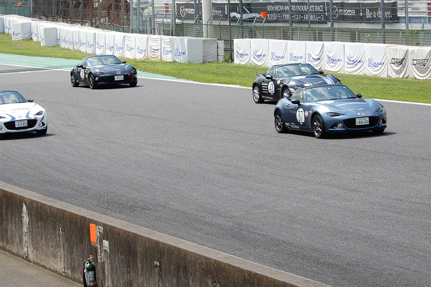 それぞれ同じ型式のロードスターで、かつ同じタイヤ(POTENZA Adrenalin RE003)でレースを行うので、ドライバー個々のテクニックが際立つレースです。多少のチューニングの差はあるかもしれませんが、ドライバーテクニックの凄さを目の前で観戦できる楽しさがあります。そして、普通の乗用車でのレースですので、速さを目で追うことに意識を向けることなく、レースを体感することができると思います。