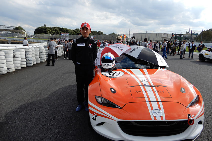今年のメディア4耐は、24台のロードスターが走行。今回は記念大会ということもあり、当レースをサポートしている企業で混成チーム「Team Support Companies」を結成し、参戦しました。ブリヂストンは、当レースにタイヤを供給していることから、「Team Support Companies」に加わり、ドライバーとして当社の従業員でテストドライバーの 本田真哉 選手も参戦。