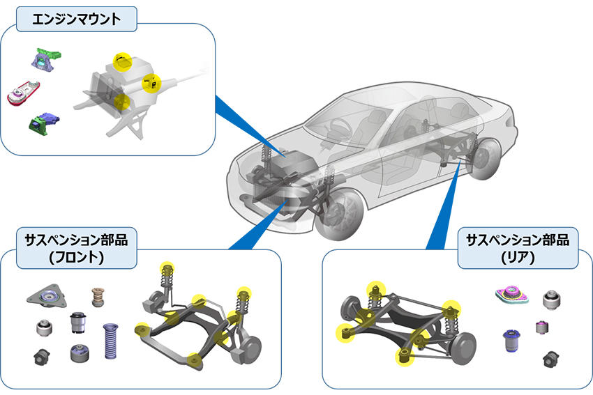 実はブリヂストンの防振ゴムは国内外の様々な自動車に使用されています。